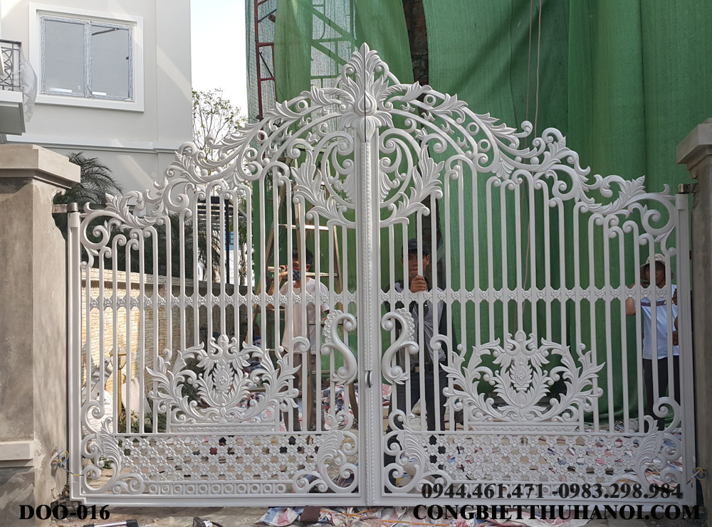 Mẫu cổng nhôm đúc Doo 016: Mẫu cổng hoa lá tây thích hợp với không gian nhà biệt thự thoáng rộng, nằm trong khu dân cư được bảo vệ nghiêm ngặt.