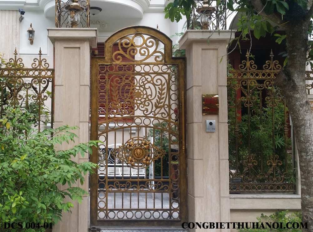 Mẫu cổng sắt 04 được thiết kế mô phỏng mẫu cổng Buckingham ( London). Họa tiết hoa văn cầu kỳ kết hợp với một số họa tiết gang đúc và sắt đúc, vật tư sử dụng hoàn toàn là thép đặc nguyên thanh, khung bao cổng được tổ hợp dạng I đúc, mẫu được sơn mạ kẽm trước khi sơn mầu. Mẫu sản phẩm đa dạng và rất nhiều người sử dụng.